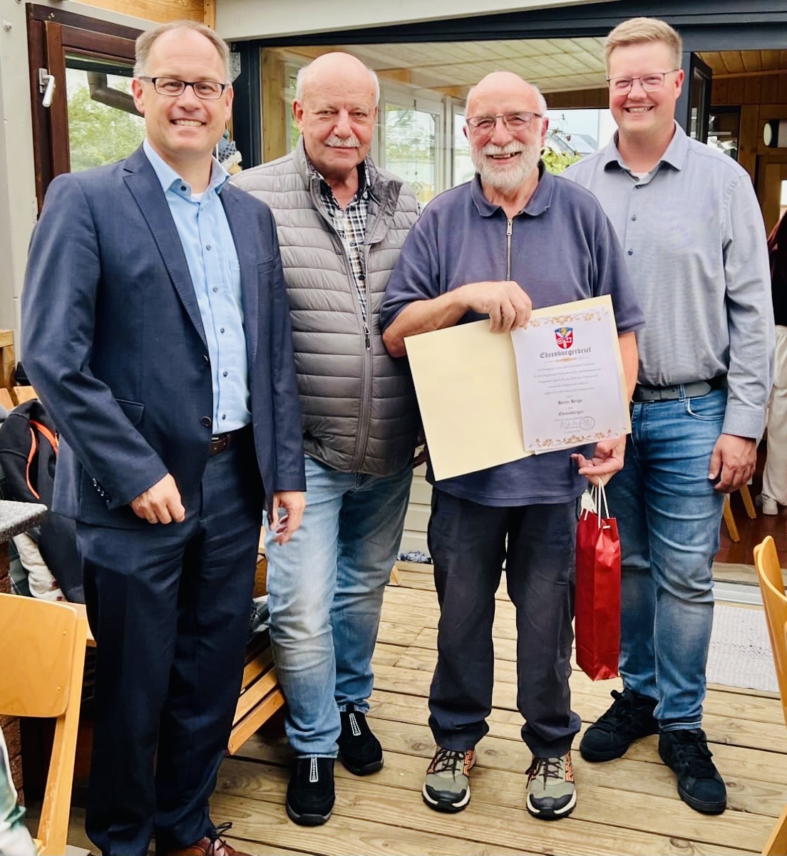 Verpackt in einer gelungenen Überraschung wurde Heinz Hilge im Rahmen seiner Feier zum 75. Geburtstag die Ehrenbürgerurkunde verliehen. Mit dieser Auszeichnung würdigt die Gemeinde sein jahrzehntelanges, außergewöhnliches Engagement für das Gemeinwohl.